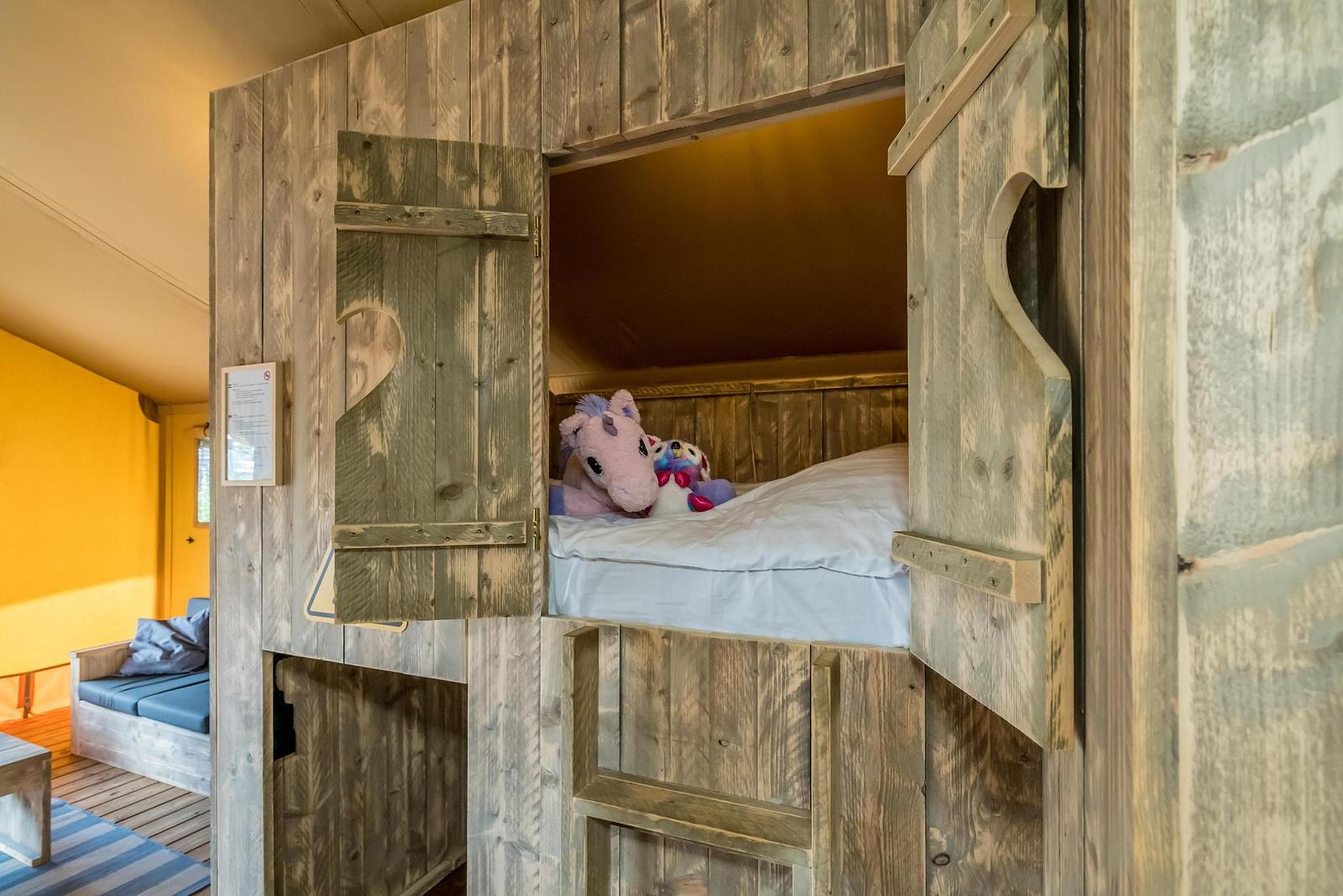 In onze glampingtenten kampeer je in stijl, zonder in te leveren op comfort! Maak lekkere gerechten klaar in de keuken, fris je op in de badkamer en geniet van een goede nachtrust in de unieke bedstee. Het hele gezin vermaakt zich bij onze uitstekende faciliteiten; plons in het zwembad, leef je uit in de binnen- en buitenspeeltuin, ga eropuit met het animatieteam of schuif aan in ons gezellige restaurant. Dit wordt een glamping ervaring om nooit te vergeten!